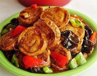 3.放入素鸡,翻炒至入味。