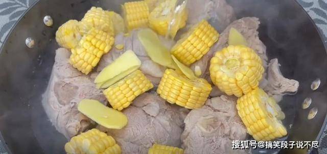 4、放玉米、姜片、八分满清水,连续炖半小时。