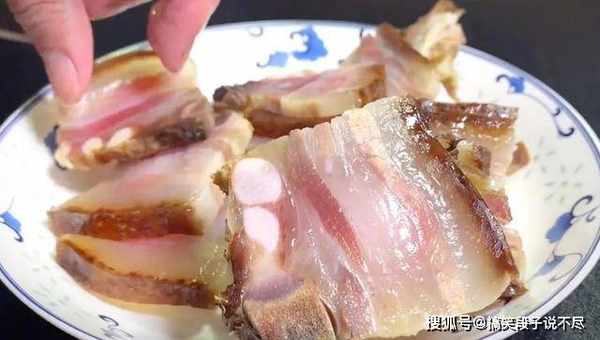 1、购买回来的腊肉,用开水浸泡,水降温后,用刀子刮掉表面的污渍。