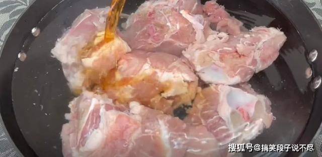 2、随后冷水下锅,放料酒去腥,焯水10分钟捞起。