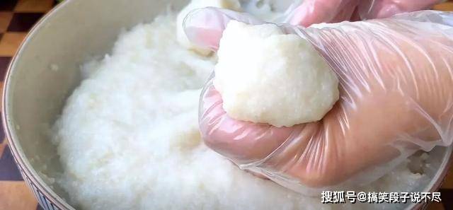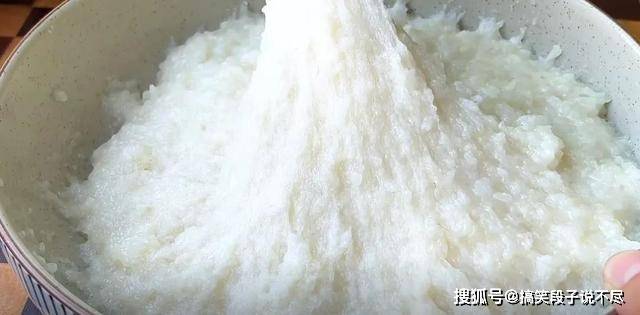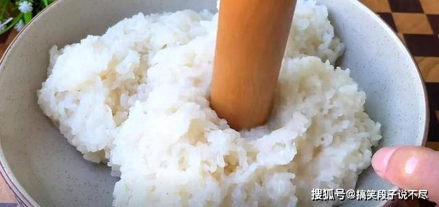 4、糯米捶打变成上面这样,黏糊糊的面团就可以了。