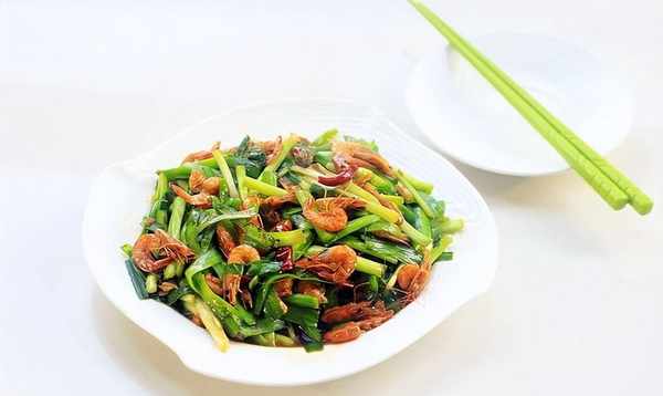 10、韭菜好吃,小河虾又香又好吃。真的是快手的一道菜。补钙很容易。对小孩和老人都很好
