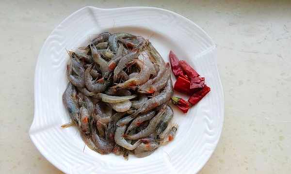 2.河虾洗净沥干水分,姜切碎,泡椒皮切段