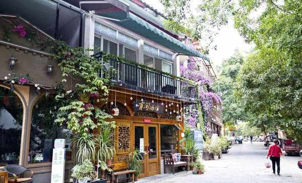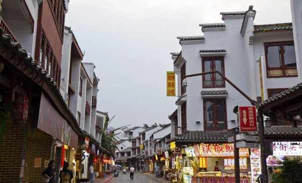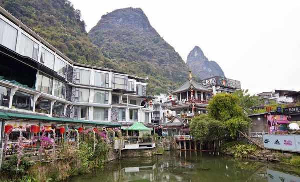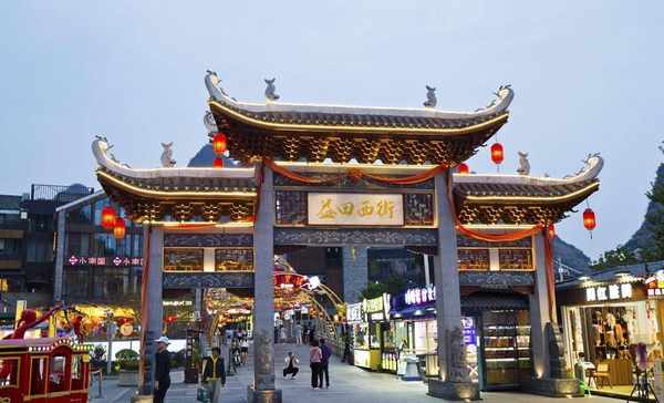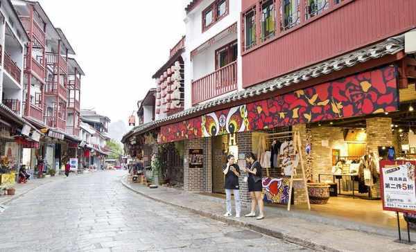 近年来尽管阳朔西街有了很大的发展,但仍然保持着朴实无华的迷人古貌,一条蜿蜒的石板路,将既有浓厚的地方特色,又有小家碧玉的南方城镇建筑风格展示在世人面前,同时这里又不失国际情调的人文景观。这里的酒吧、咖啡厅、饭店、网吧、工艺品店、书画店等装修风格大多为中西合璧,几乎所有的店铺招牌都是中英文对照,从老板到服务员,乃至普通居民到街边水果摊的大妈们都能说上一口流利的英语,除了人的肤色及着装外,在语言上已经没有了交流障碍,是个超越地域的小型“地球村”。