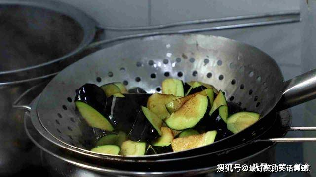 茄子要高油温下锅,防止大量吸油。也可以在茄子表面裹一层干淀粉,或者用盐水浸泡5分钟,能有效避免茄子吸油。