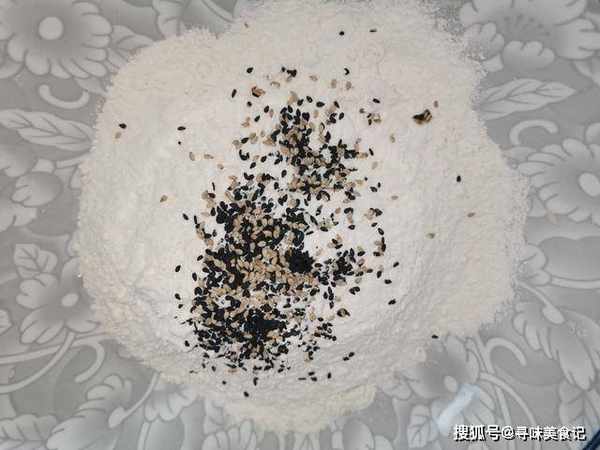 食材准备:70克核桃仁,2个鸡蛋,200毫升牛奶,200克普通面粉,2克发酵粉,适量熟的黑白芝麻