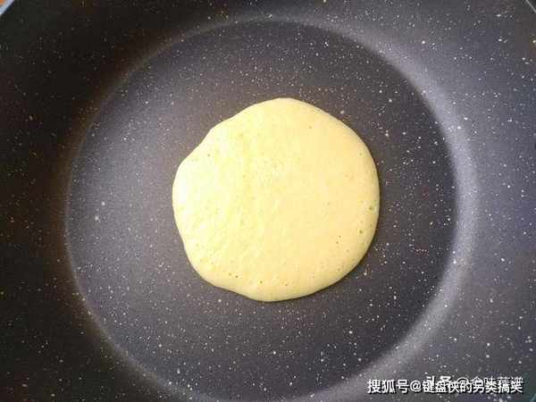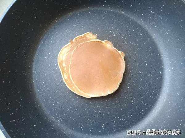 要用不粘锅或者平底锅来做,不用刷油,适当调整火力,必须要用泡打粉,才可以形成面饼的蓬松,松软可口,这一步尽量别省略。