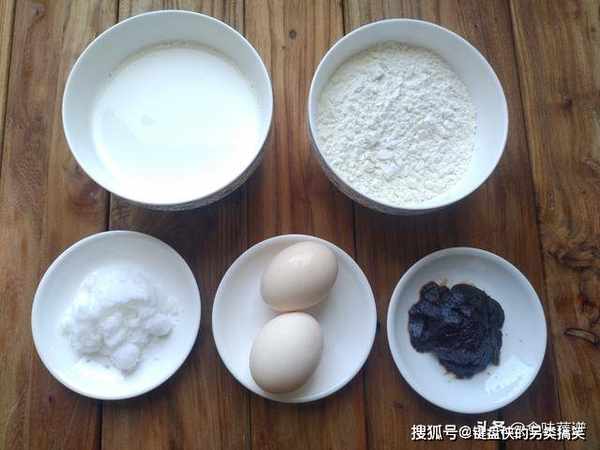 1、准备牛奶、面粉、白糖、鸡蛋、豆沙馅,如图所示。