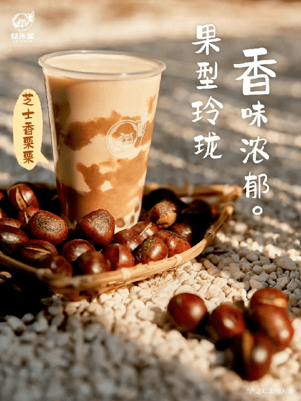比如,益禾堂去年9月就上新了一款栗子产品,取名芝士香栗栗,栗子与芝士融合,搭配茉莉绿茶,清爽不腻。