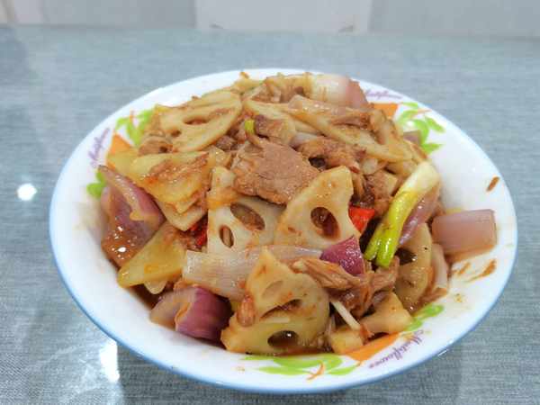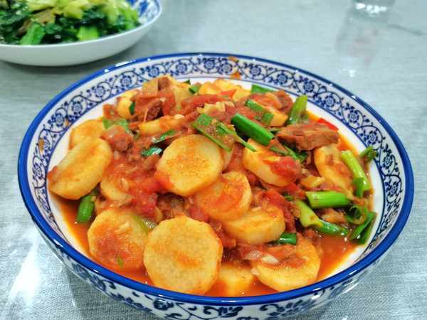 熟牛肉和山药放一起炒熟,最后放两个大西红柿,把西红柿炒成汤汁,拌米饭吃格外香。