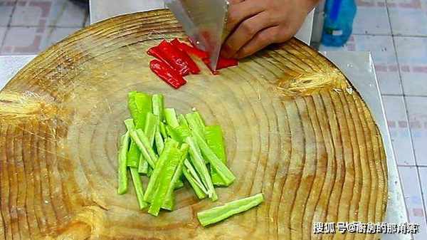 青椒一个,去籽后,切成宽条,红椒半个,去籽切成宽条用来配色好看。