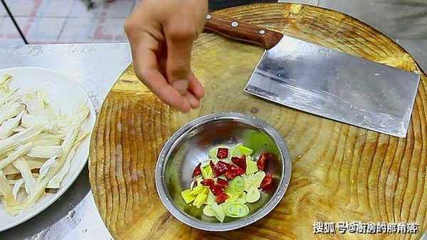 大蒜四粒,切成薄片,生姜切成薄片,葱白切成马蹄片,抓入一把红干椒。