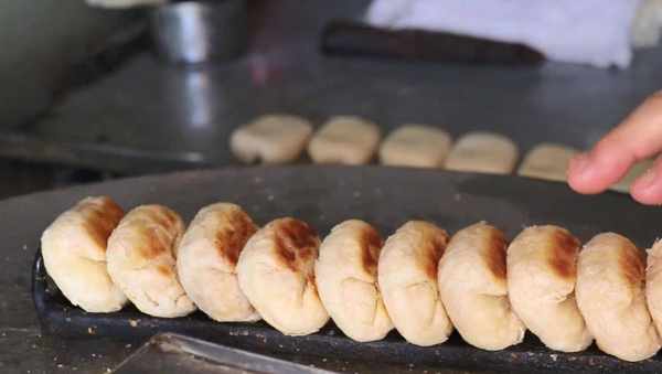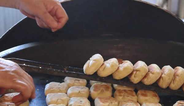 大姐说自己一个人从早忙到晚也就只能做400个,并不是因为这个点心有多么的难做,是在烤的时候比较耗费时间,因为做好以后,先需要在平底锅上面来回烙一下,这个过程需要20分钟,然后再放到下面的烤箱里面烤10分钟,才能够卖给顾客,而且在烙的时候对于火候的要求也是比较严格的,需要用小火慢烙,因为火大了会烤糊,然后影响整个口感。