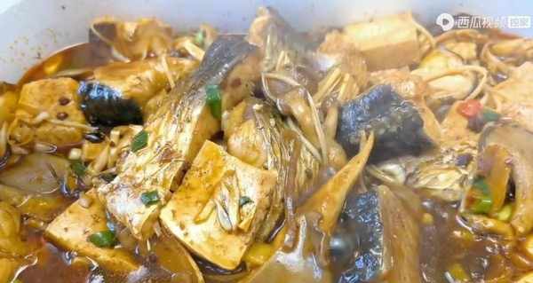 炖煮好的鱼肉,我们夹一块拿出来看一下,鱼肉非常的完整,软嫩鲜香,特别入味。由于提前腌制,这个鱼肉里面都已经有鲜甜的味道,但是夹开之后颜色发白,肉质软嫩,超级的鲜香好吃。豆腐经过炖煮之后吸足了汤汁,您看一下上面都已经有这种蜂窝状的小孔了,吸足汤汁的豆腐,咬上一口比鱼肉还香。蘑菇吸收的鱼肉的鲜香味道,咬在嘴里都有爆浆的感觉,特别下饭。