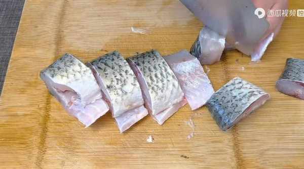 鱼肉里面的刺比较坚硬,所以在洗的时候一定要仔细小心,不要伤到手。轻轻将鱼肉搓洗掉表面的粘液即可捞出,鱼块捞出之后先放入盘中备用。