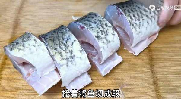接着将鱼切成段,长度大概是在三厘米左右,切好后再把每一段中间来两刀,一分为三,切开之后可以让鱼更加的薄一些,在制作的过程中也可以更加入味。鱼尾部分直接改刀成两片就行。切好之后将这些鱼肉全部放入一个大盆中,我们还需要进入二次清洗。鱼肉表面会有一些粘液,这个粘液腥味也较重。往鱼肉中放入一些食用盐,来上一点点小苏打,之后放入温水,把鱼肉块全部清洗干净。