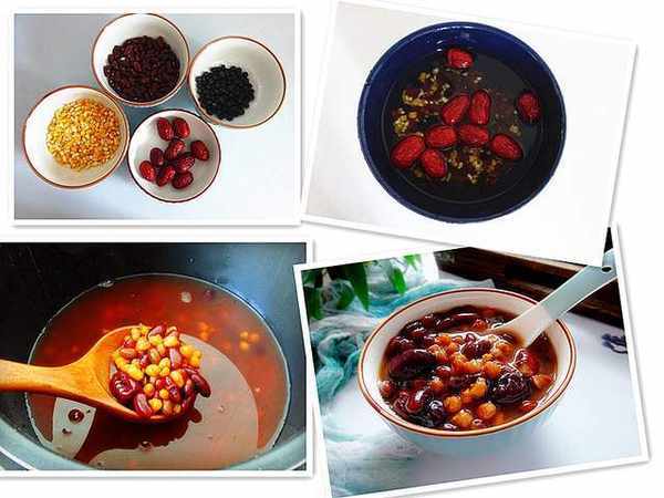 做法:食材备好,黑豆莲子不爱熟,我们可以提前浸泡一夜;放入砂锅,加入足量的水,开火煮。大火煮开后用小火煮半小时以上;红枣剪下枣肉;看到黑豆和莲子软面了就加入红枣,再煮10分钟即可。