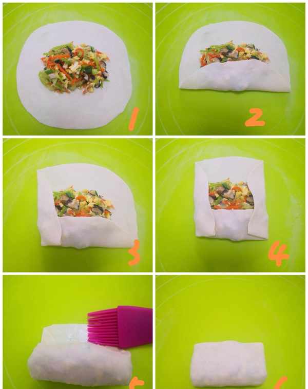 1~4。如图所示加入更多的馅料并按顺序折叠。