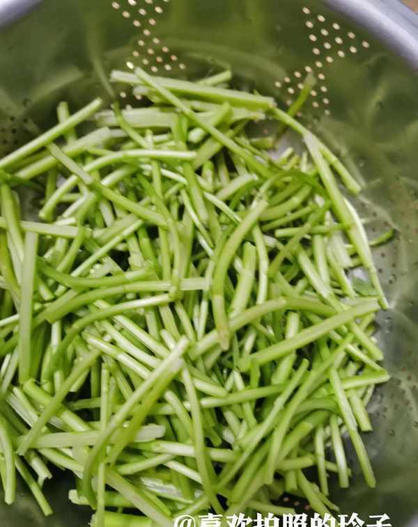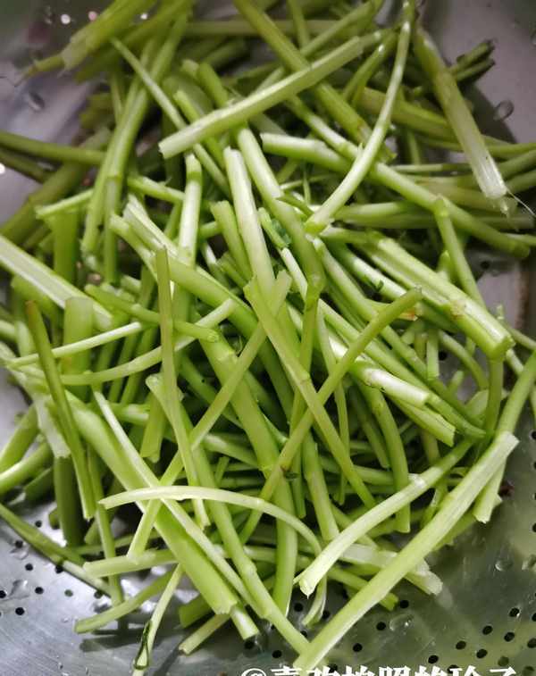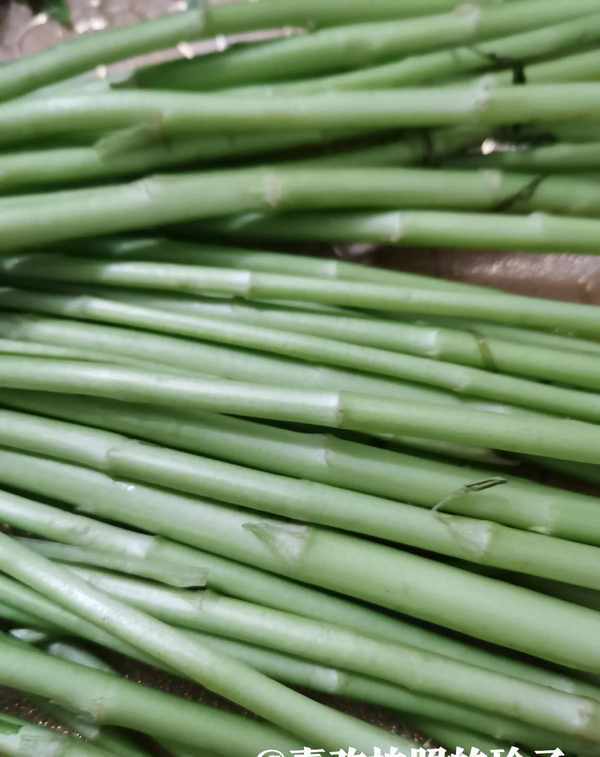 用手把茎表面的老筋拔掉,留下嫩茎炒着吃