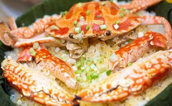 哗,好大只蟹伏在荷叶蒸饭上!师傅的「荷香北海道米蒸花雕蟹」一上桌便先声夺人!师傅选中的也是北海道梦美人米,浸泡后再包上荷叶放在竹笼蒸煮,再把花雕酒蒸蟹放在荷叶饭上,以蟹汁、花雕酒、蛋黄浆做芡,吸满蟹汁的饭粒非常鲜香。