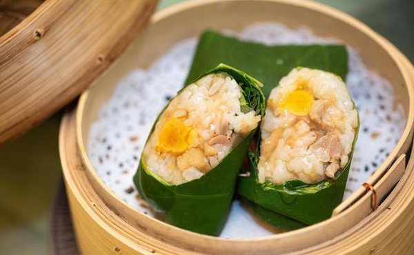 这道「荷叶珍珠饭」是师傅的杰作,他说因为糯米对筋骨无益,因此可以黏性较重的滋贺县晴冈米取代糯米。浸水后蒸熟,配上菇粒、瑶柱、鸡粒、咸蛋黄及虾米制成荷叶饭,没一般糯米鸡的黏,但带荷叶的清香。