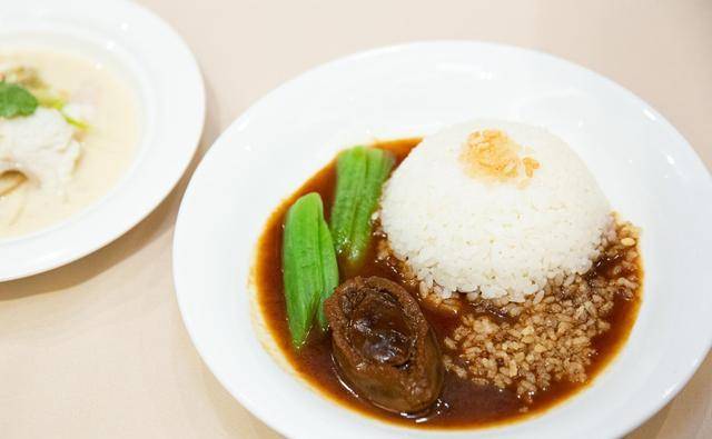 另一道「鲍鱼烩鸳鸯日本米饭」郑师傅简单的以金芽去蜡白米饭,配上名贵的鲍鱼菜式,以日本岩手县干鲍熬煮10小时,以鲍鱼汁、鸡、猪肉及金华火腿等熬足3小时作酱汁。每口都是矜贵与心机的杰作。