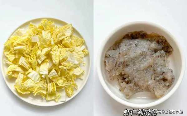 准备一些食材:买150克新鲜的小白菜(小白菜是减肥朋友最喜欢的蔬菜,主要含有水分、维生素和粗纤维,可以多种方式准备,其实也可以用来准备小白菜汤),买鲜虾(虾是高蛋白、高钙的食材,比猪肉更有营养,可以做成虾扎或者虾丸,味道很浓),小葱少许,鸡蛋一个,生粉少许,水少许,盐少许,胡椒粉半勺,植物油少许,鸡蛋几个,热水少许,其他调料。