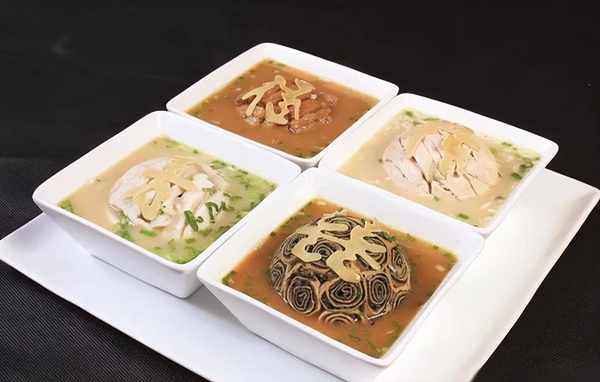邹城有孟府晏,孔子说:食不厌精,脍不厌细,他在吃上是很讲究有。孟府宴也是一个很认真的宴席,菜品很丰富,上菜有仪式感,讲究礼仪,很庄重,菜品有四凉四干四鲜四扣碗或者八扣碗,以清蒸鸡打头,以鱼打尾,扣菜为主,所以也叫清鸡合碗席。孟府菜极注重仪式感,菜中用到很多摆件,都喻意深刻,比如这个“七篇贻矩”的摆件,原意是雍正给孟府题写的匾额,告知后人做人要守规具,宴席上摆上此件,喻意深刻。孟府菜讲究清淡,少油,是鲁菜的典型菜。。。。。。。。。。。四干四鲜 四凉四扣 鸡鱼,高汤加菜顶
