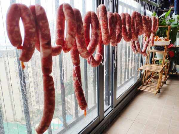 山东这些年也做腊肠,也有不同风格的腊肠受欢迎,如如莱芜香肠、博山香肠、高密香肠等风格让人喜欢,这其中邹城川味肠更让人喜欢。邹城川味肠的做法来自于四川,是兖矿的四川朋友们带来的,四川肠讲究麻、辣、咸、香,到了邹城就用了淡麻淡辣淡咸,取“中庸”之道,更符合鲁菜风格。每年大雪一过,就是灌肉肠的好日子,灌好的肉肠晒在窗台,满屋生香,有个七八天就晒成了,上锅一蒸,油亮透红,或米饭、或馒头、或煎饼,皆是美味也。