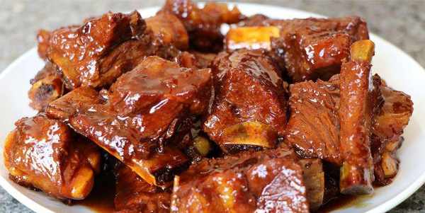3、全部都煮烂后,把里面的香料都夹出来,再转大火把汤汁收浓,汤汁也把它淋到排骨上,最后再撒上一点葱花,红烧排骨就做好了。