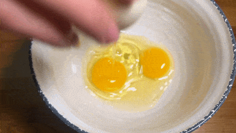 4.在一个大碗里打三个鸡蛋,