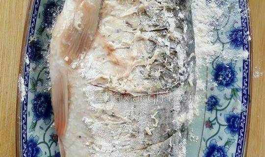3.鲤鱼两边拍上面粉,这样不会黏锅,保持鱼皮完整