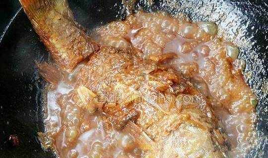 6.一次加够水,没过鱼身即可,大火烧开后,改小火慢炖30分钟左右。