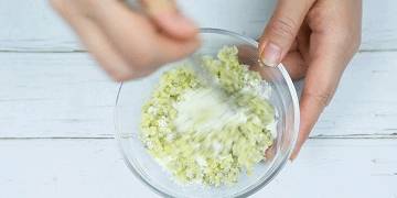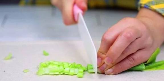 ▲步骤五:将准备好的青菜洗净切碎,备用