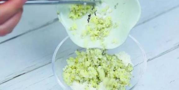 ▲步骤十五:将煮好的小米疙瘩倒入碗中
