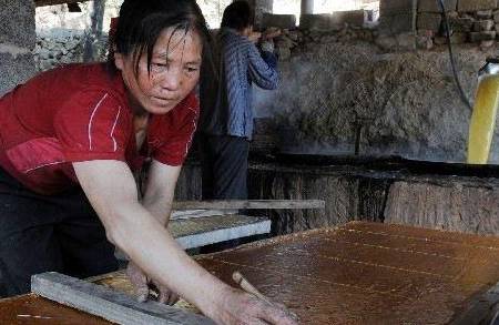 农妇们怎么把甘蔗熬成红糖的?各地的方法,大同小异,如果大家有兴趣,完全可以自己制作正宗的红糖。熬红糖首先将甘蔗榨出含糖的水汁,甘蔗渣就被捆扎放好备作燃料,而榨汁机榨下的甘蔗汁水经粗滤布过滤后,倒入大煮糖锅加热,放在木桶里沉淀一小时后待用,然后把沉淀后的甘蔗汁水放入锅内开始熬糖,当蔗汁熬到一定程度时,有的巧农妇还会将适量的檽米粉放入锅里搅拌,然后把糖汁盛在糖钵里,晾干后即成糖块,碾碎晾干便成赤黄色的红糖,经过精细拉扯又成扯米糖。