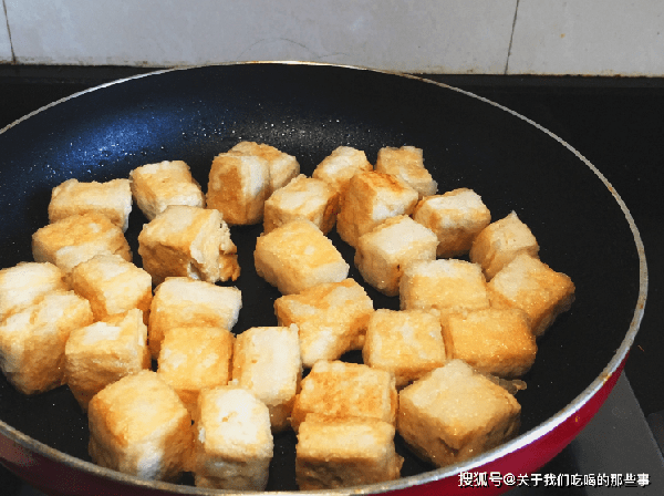 2、盘子里倒入适量玉米淀粉,放入豆腐裹上一层干粉。起锅烧油,六成热时放入豆腐块,小火煎至颜色金黄,捞出备用。碗里加入适量盐、生抽、香醋、白糖搅拌均匀。