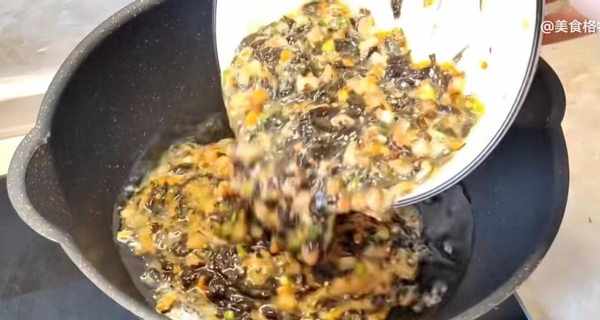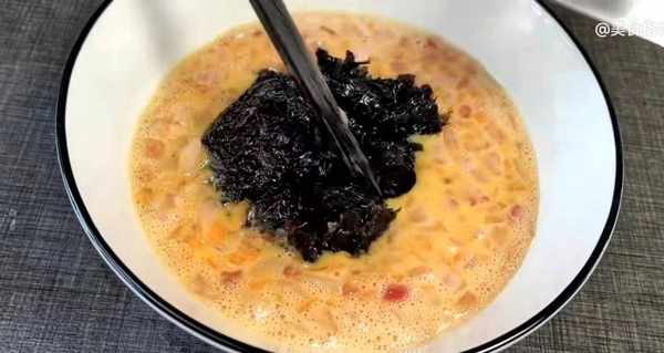 很多朋友都喜欢吃海带。紫菜营养丰富,蛋白质和钙质含量高,铁质含量丰富。非常适合老人和小孩。此外,价格实惠,特别容易协调。作为海产品,没有太多的腥味。所以家里的孩子也很喜欢吃,尤其是紫菜烤成又香又脆的茴香,让人吃一次就难以忘怀。而春天是孩子们的生长季节,所以孩子们经常需要吃紫菜。通常妈妈们会做紫菜馅、紫菜汤、紫菜糕。今天我要和大家分享的是一种新的、不同的方式来享用海藻。将泡发好的紫菜倒入滤网中,用勺子挤出多余的水分,然后放在砧板上,将紫菜切碎。切好后放入蛋液中,再加入葱花、花椒粉、花椒粉、食盐、白芝麻、香油拌匀。
