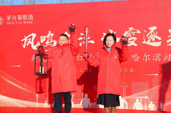 央广网哈尔滨2月27日消息(记者马俊玮)2月25日下午,在哈尔滨太阳岛景区内,茅台葡萄酒党委书记、董事长司徒军点燃火种灯,党委副书记、总经理范雪梅手举第一棒火炬出发,由此拉开了“奔跑的茅台红”第三季的序幕。