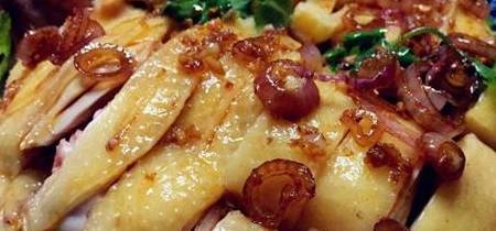 下面给这道菜介绍一下做法。首先还是那句,得准备一只好鸡,走地鸡、清远鸡都行了,因为它跟白切做法不差,对鸡的口感要求还是很高的。一个鸡的好坏,会影响一道菜的味道哦,我们广东人对吃鸡还是很挑的哦!聚会就弄一整只鸡吧,家里人的话半只就可以了,半只买的话就会贵一些。鸡洗干净跟冷水一起下锅开煮,一开始用小火慢煮,大概是20-30分钟,期间用筷子试探,如果能穿插的就代表熟了。20分钟的时候就看一下吧,煮太久老了也不好。