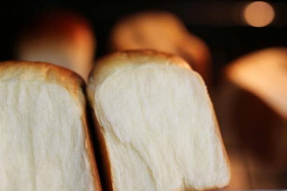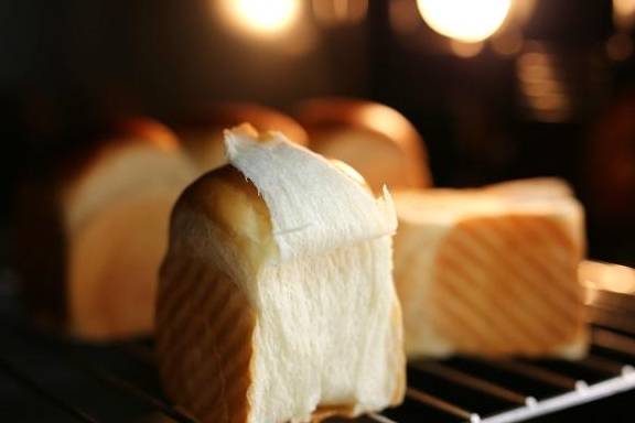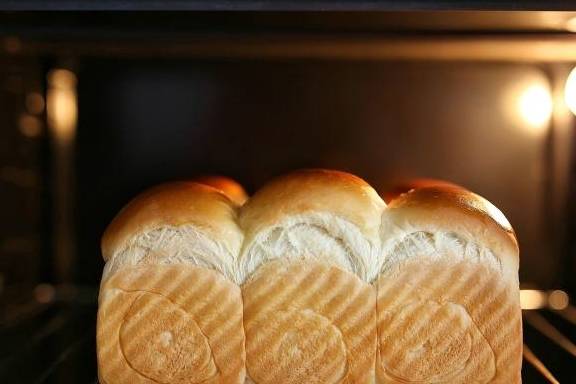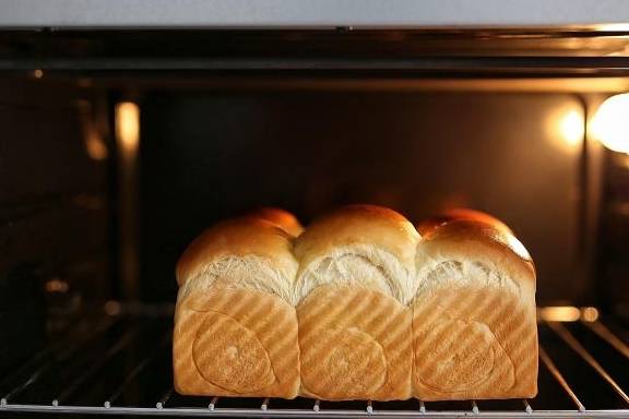 12、烤好的吐司将模具在桌面上震两下,震出盒内热气后,再把吐司倒出来,放在凉网上晾凉,即可享用