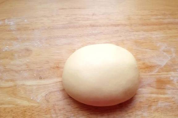 3、将揉好的面团取出,放在揉面板上,揉面板记得事先抹少许干粉防粘,通常能揉出大片薄膜的面团,表面都是非常光滑的,如下图所示