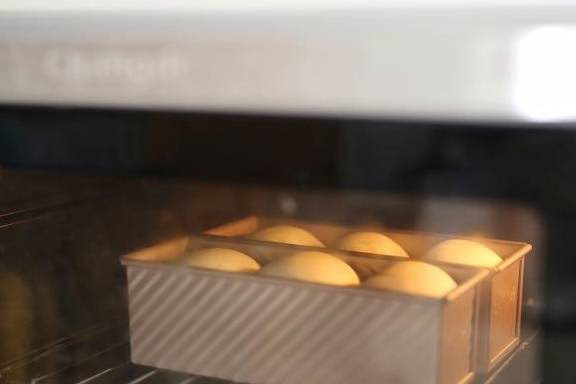 10、发酵至9分满即可取出,吐司盒取出后,烤箱预热160度上下火