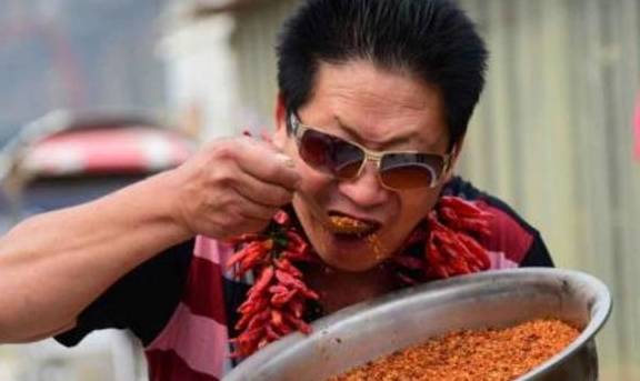 据说他每顿饭都要摄入5斤的辣椒,有时还要加上白酒和大蒜,嗜辣的程度令人咋舌,事情传开后人们都对他非常好奇,慢慢的李永志成为了河南当地的一个名人,被邀请去参加了各式的辣椒活动。