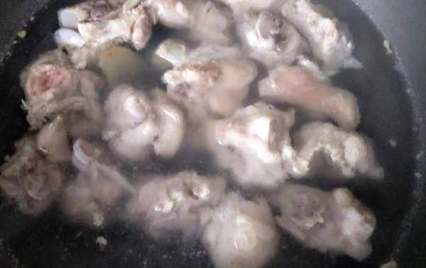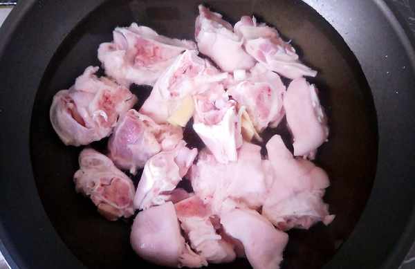 6、加入适量的温水(没过猪蹄),大火煮开;