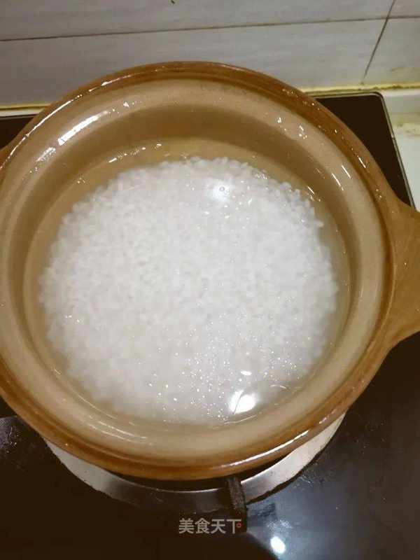 4. 大米洗净下锅,水稍微多一点,中火煮开。