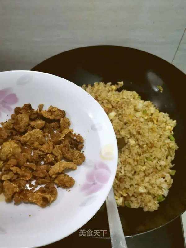 刚熬制的猪油,油炸子也是酥脆,来份猪油的油炸炒饭,特别美味。