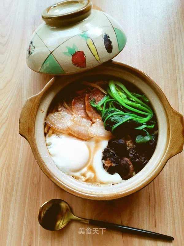 8. 打人一个鸡蛋,香菇,盖上盖子小火煮3分钟。