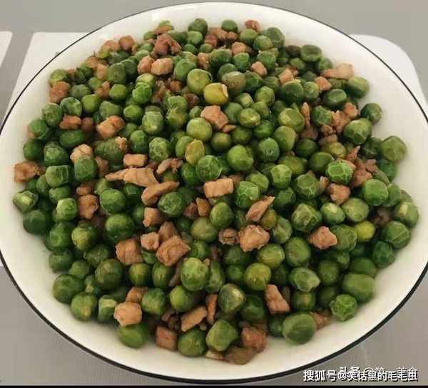 豌豆、肉沫、小米椒、葱、姜、蒜、