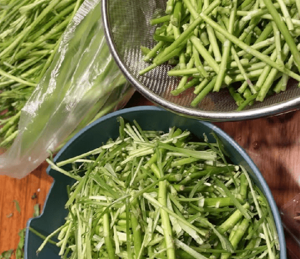 去掉叶子的芦蒿看起来就像我们平时常吃的空心菜和蒜苔。其实,芦蒿的叶子也可以吃,而且营养更丰富,不过它的口感略带苦涩,吃起来不如茎杆清香鲜美,也不及茎杆爽脆,所以人们一般都会去掉叶子,只食用它的茎杆。